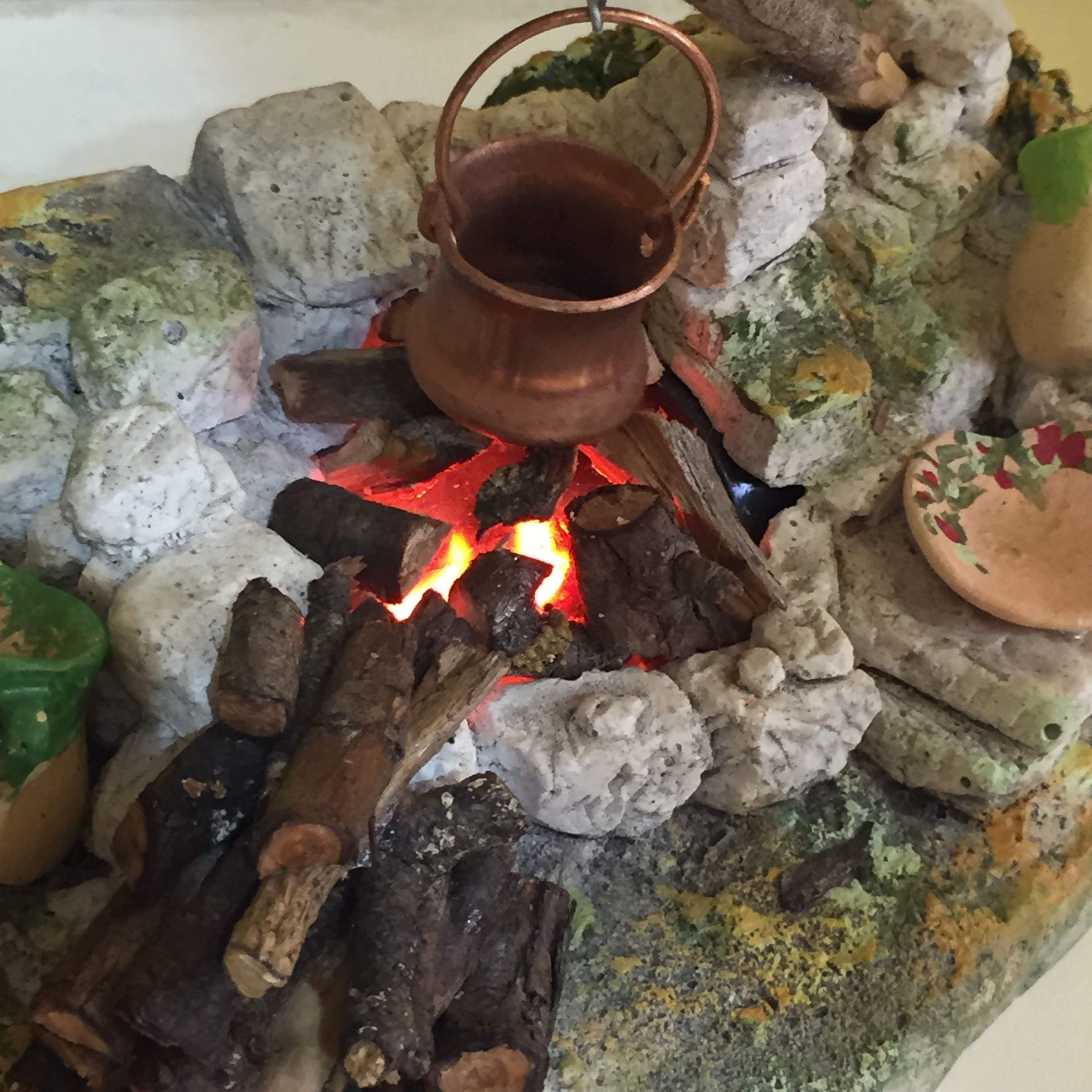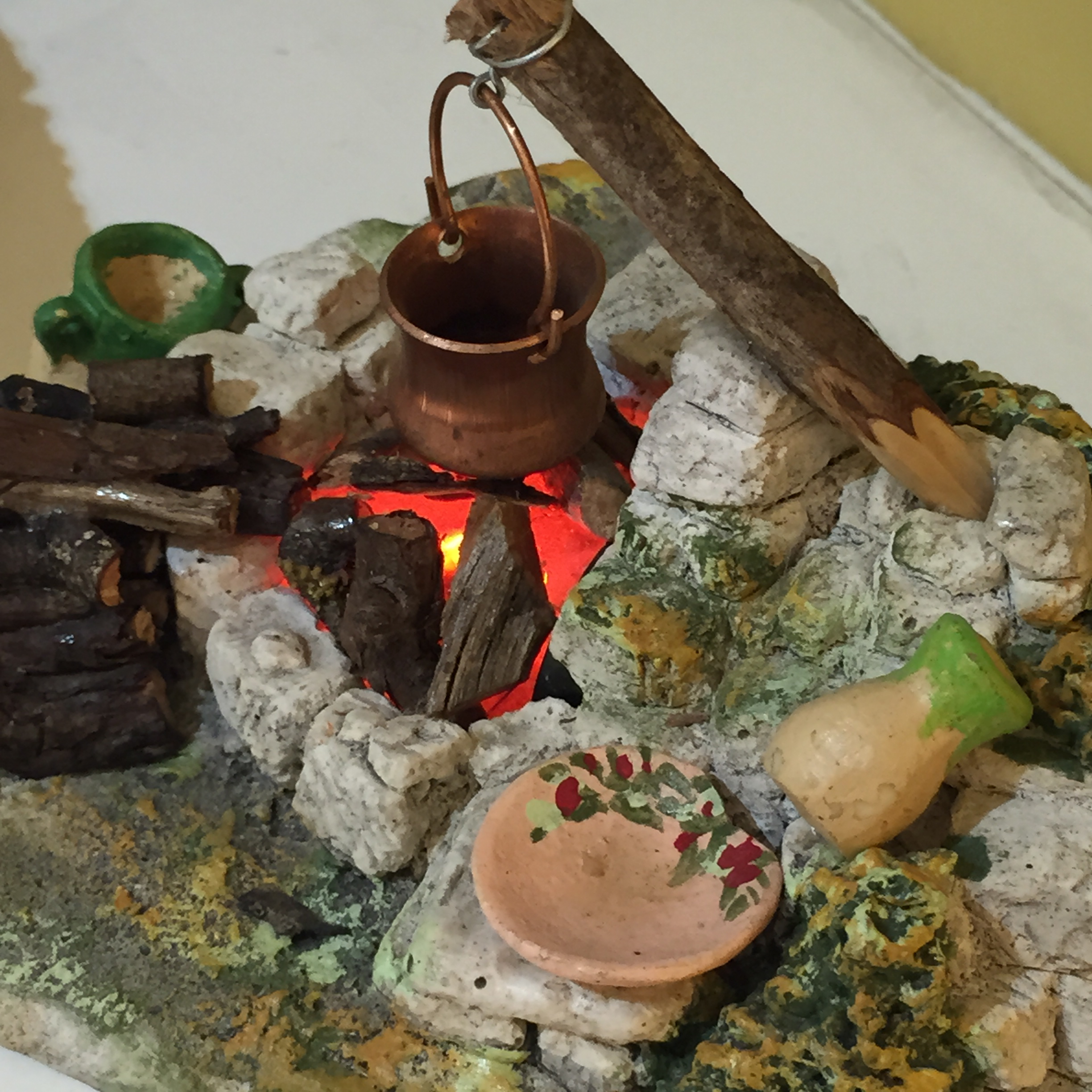 Décor de crèche artisanal peint à la main. Idéal pour santons 7-9 cm. Fonctionne sur secteur 220V. Fabriqué en Provence, France