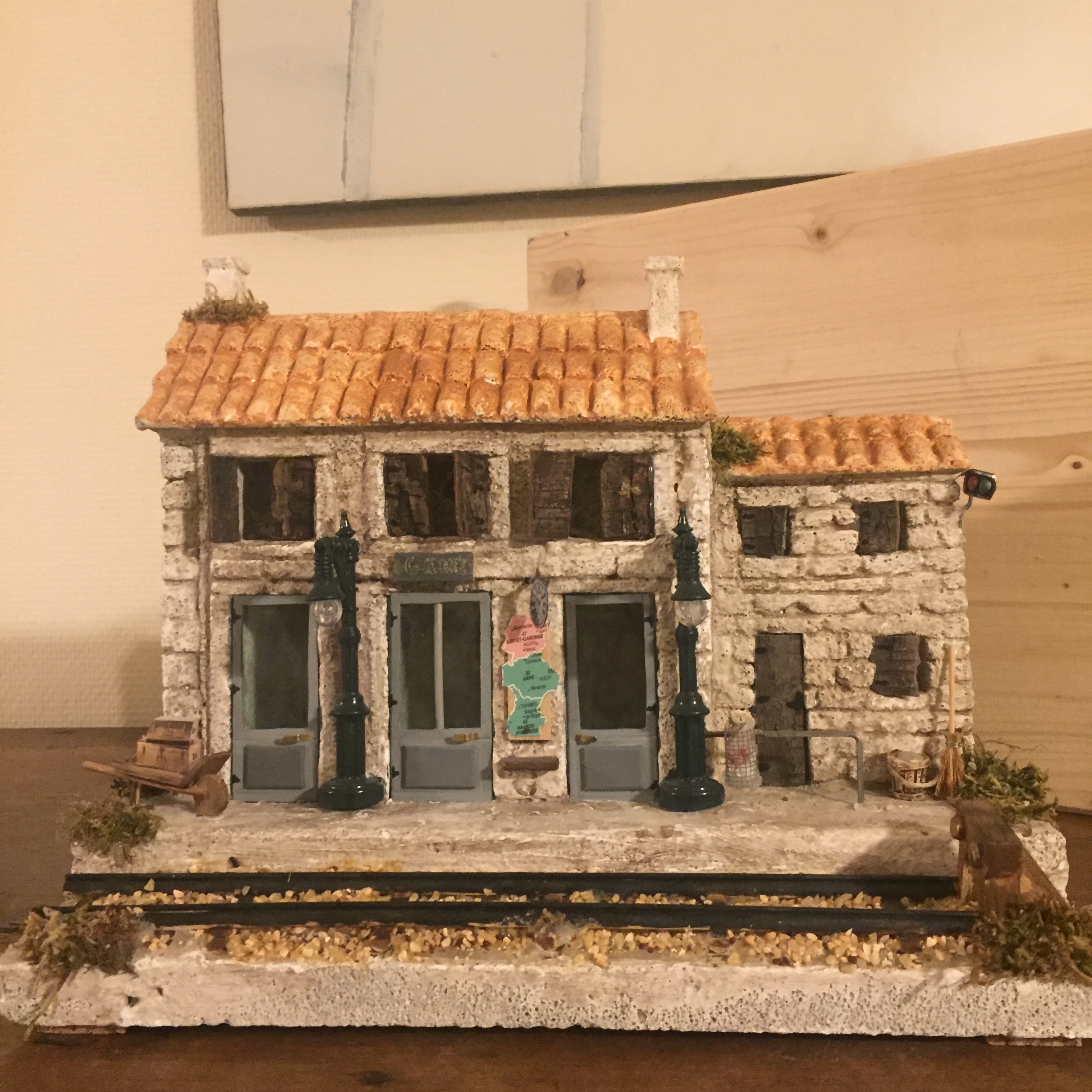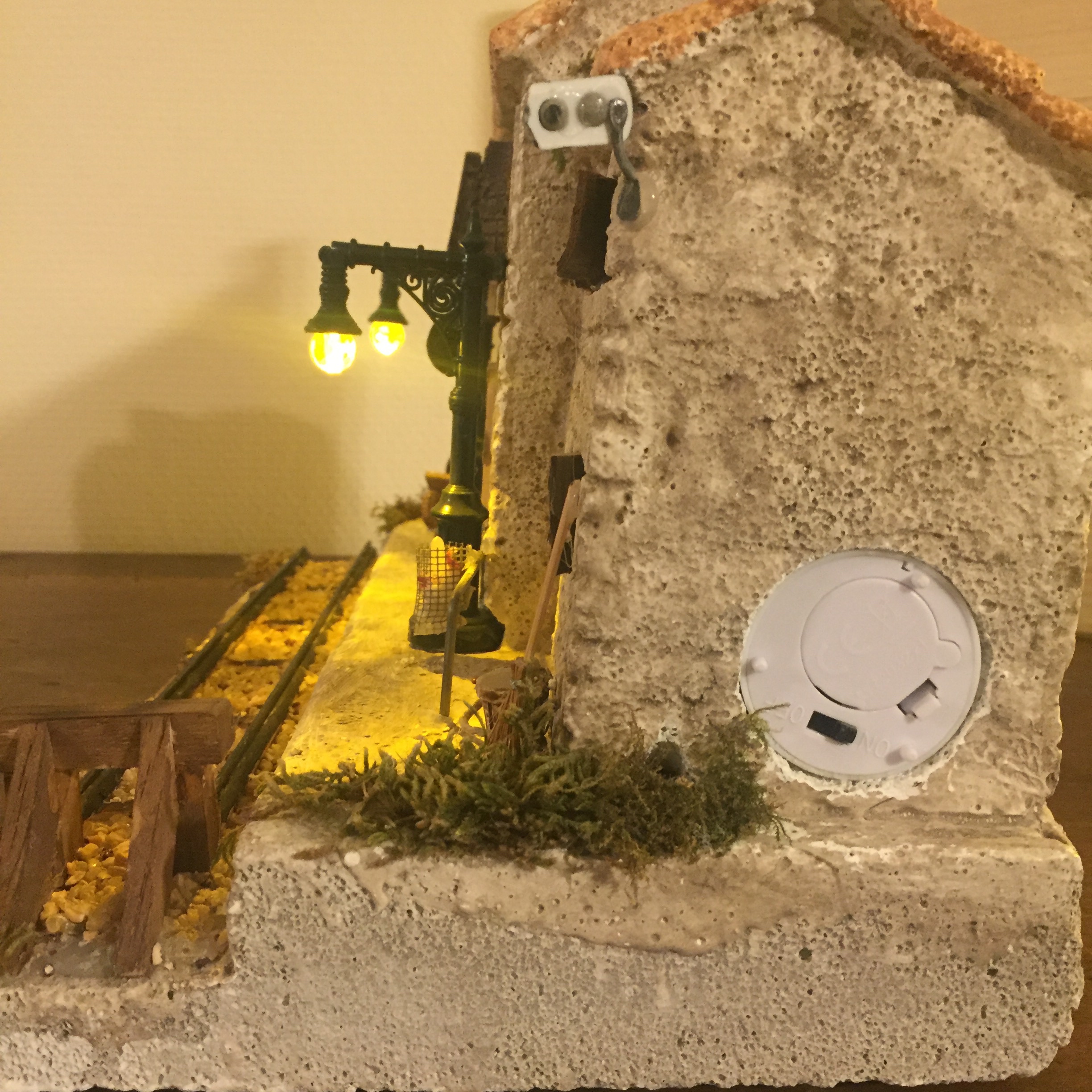 Pièce unique. Décor dont toutes les pièces sont fabriquées par l’artisan, en Provence, France. Éclairage intégré. Images non contractuelles. Prévoir 2 semaines avant livraison. Idéal pour santon de 5 à 10 cm, dim. 30 x 15 x 20 cm hauteur.
