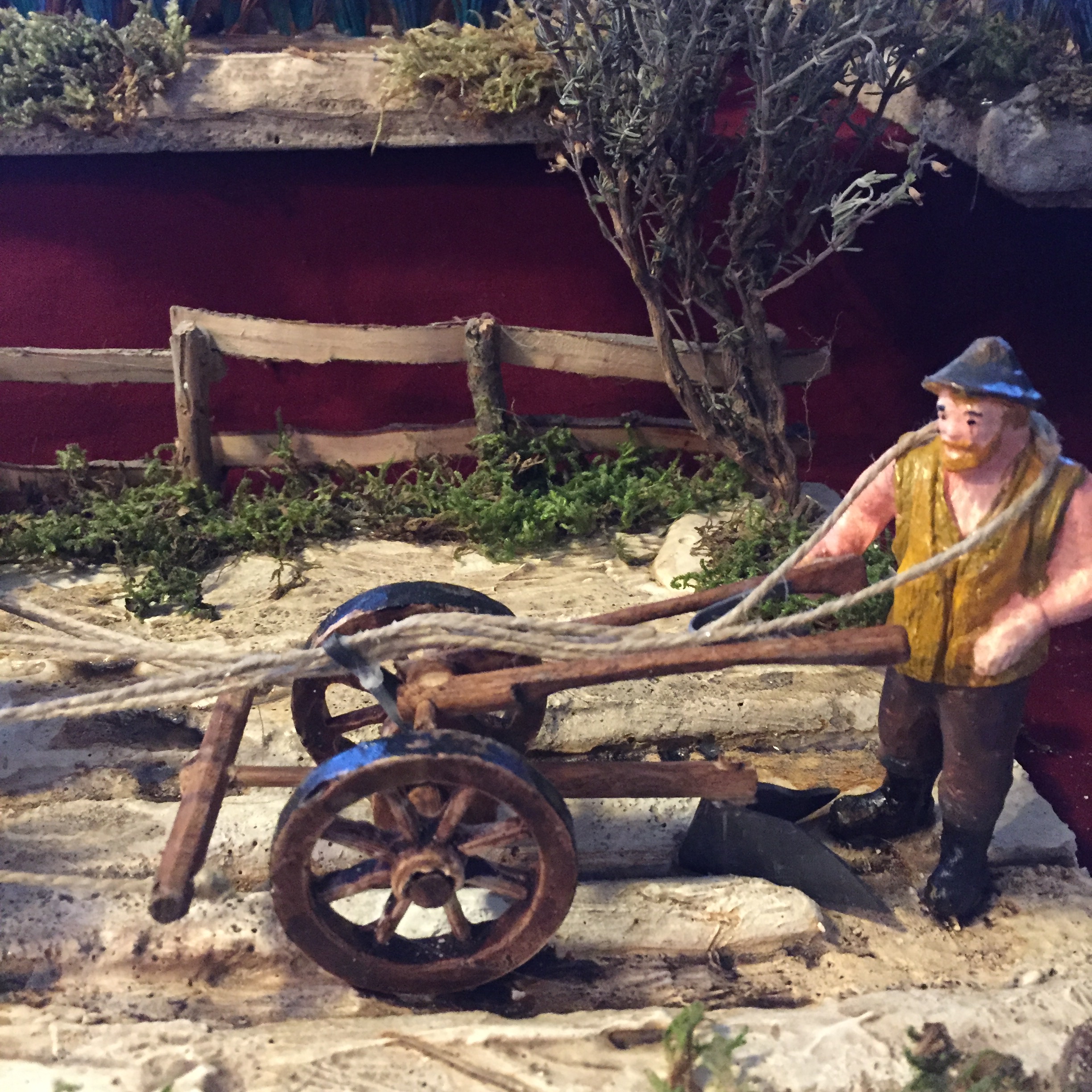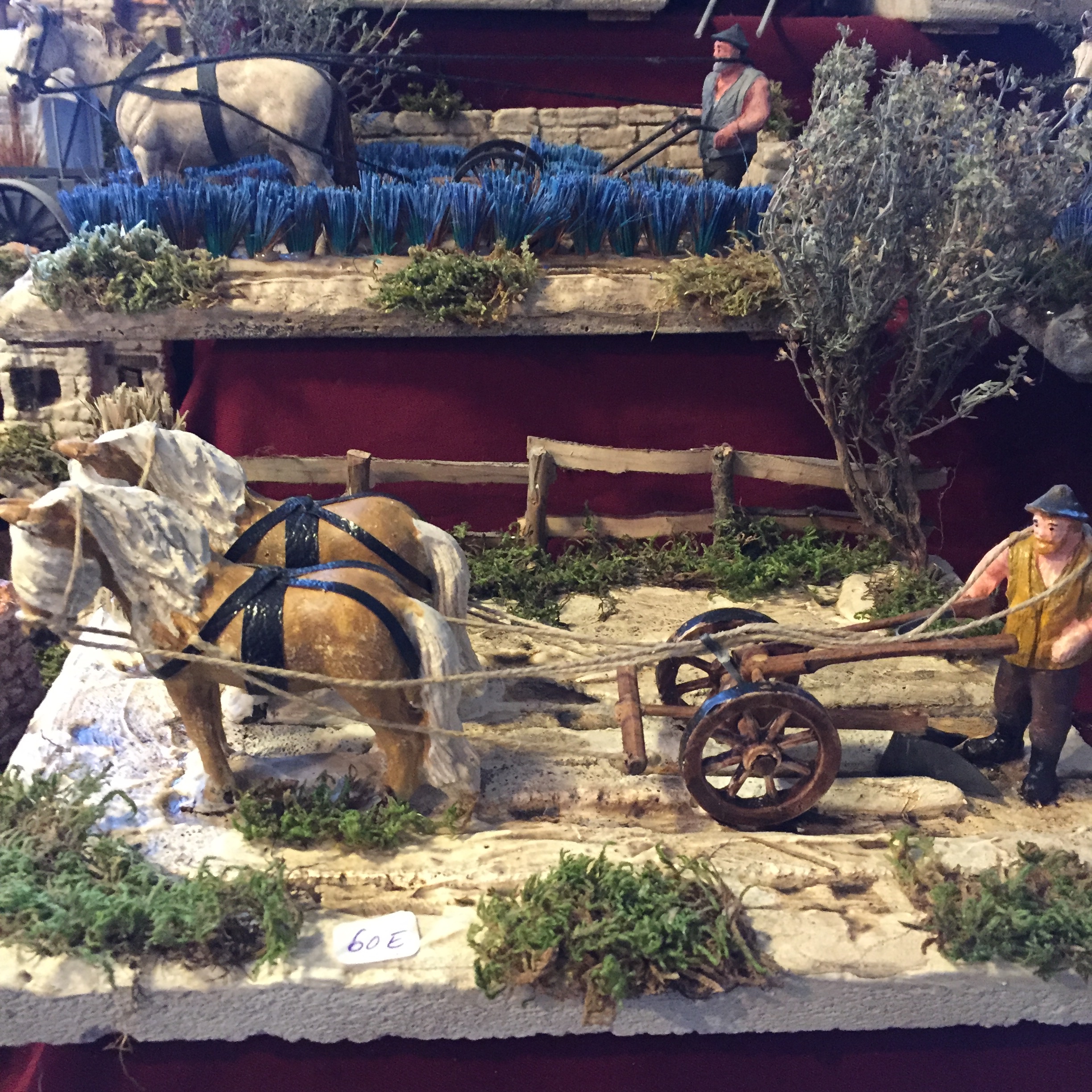 Pièce unique. Décor composé de 1 santon et 2 chevaux, dont toutes les pièces sont fabriquées par l’artisan, en Provence, France. Dimensions 30 cm x 25 cm. Images non contractuelles.