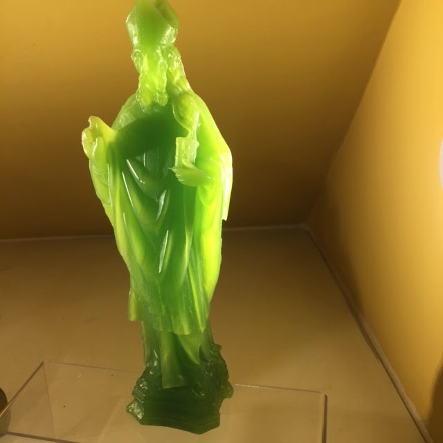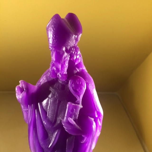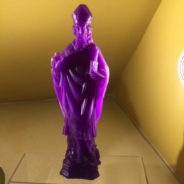 Figurine en cire (30 cm de hauteur, diamètre 10 cm) représentant Saint Eloi. Cet objet en cire ne comporte pas de mèche et ne peut pas être utilisé comme une bougie. Fabriqué à l’ancienne en Provence, France. Entreprise du patrimoine vivant.