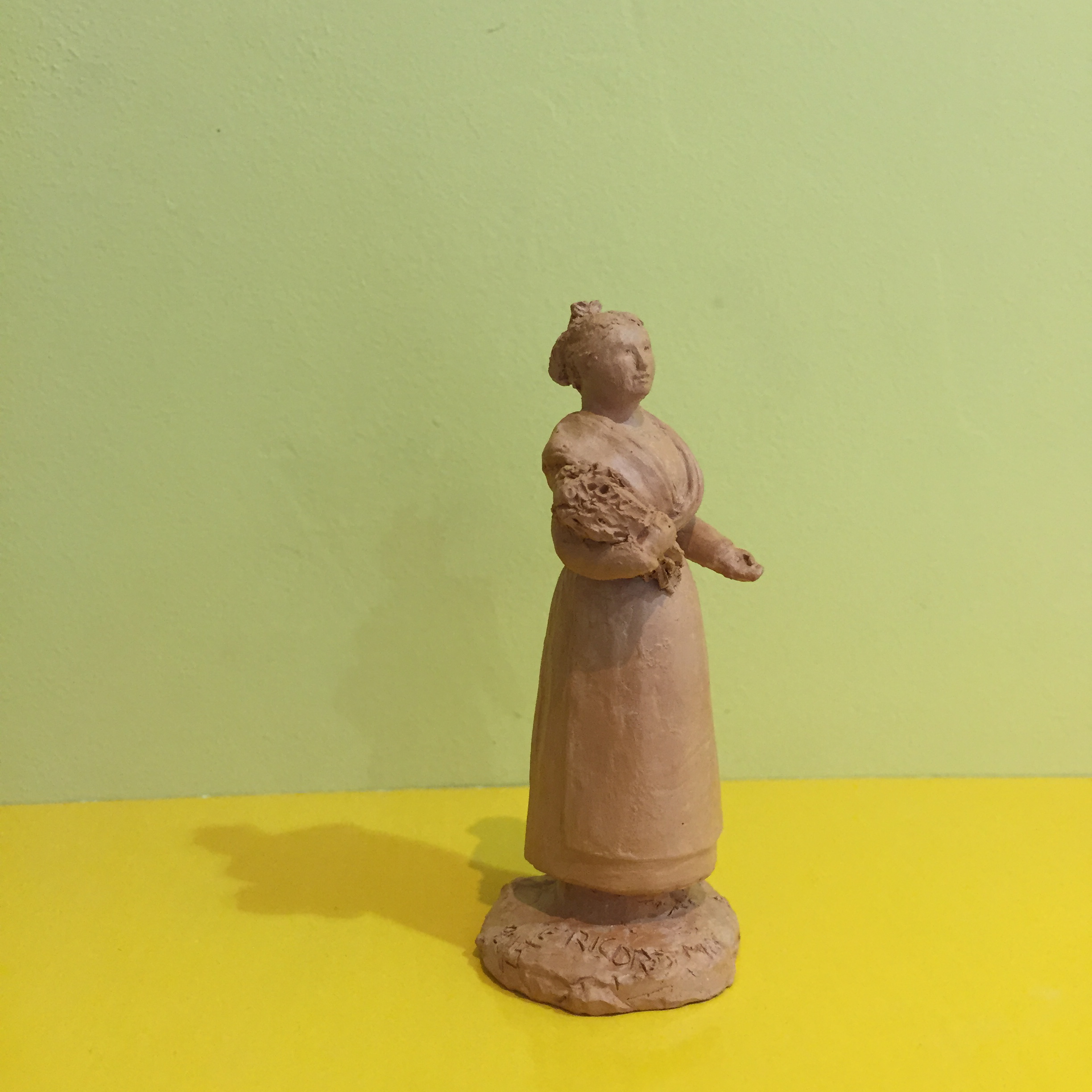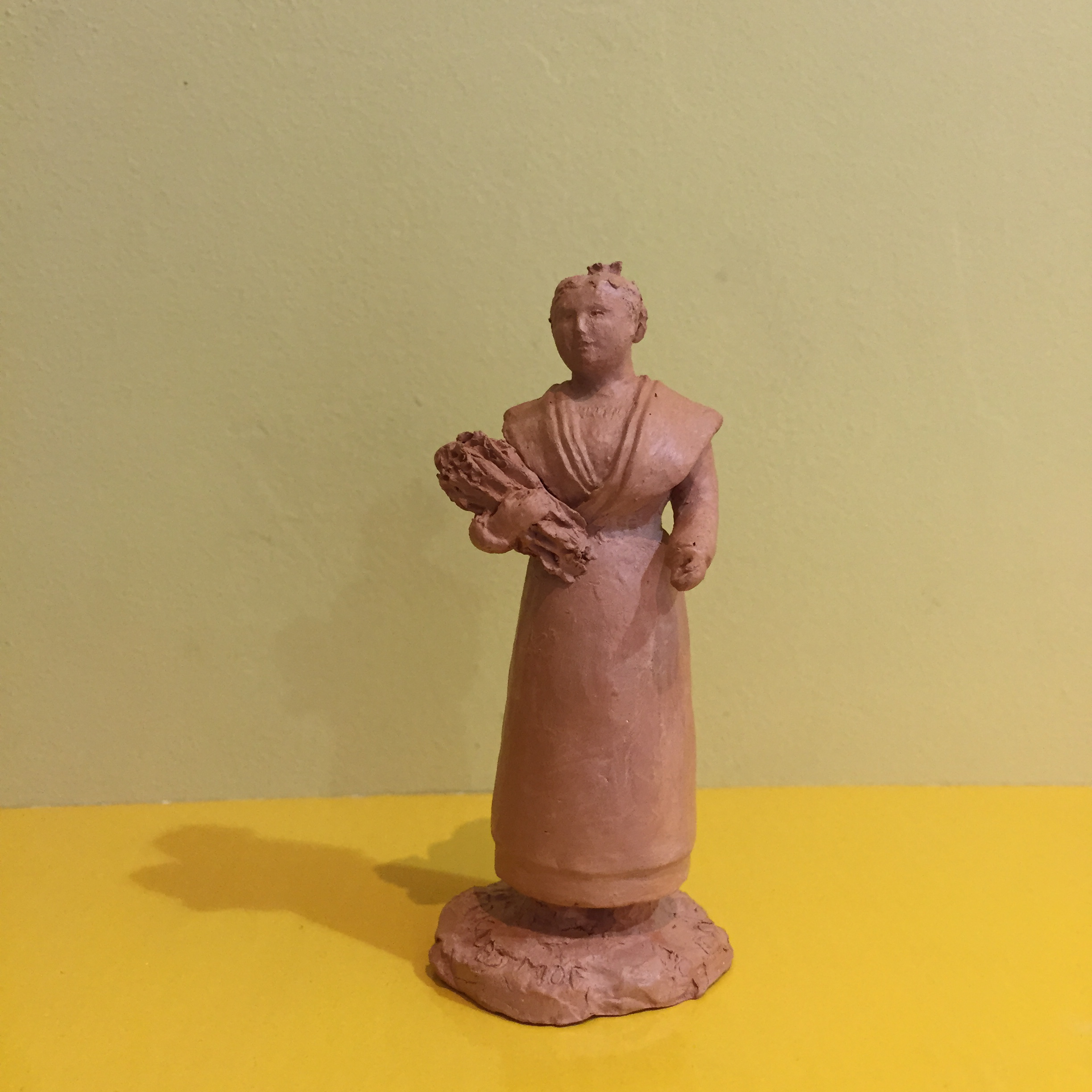 Meilleur Ouvrier de France. Santon 9 cm en terre cuite brute cirée,  fabriqué à Arles, Provence. Pièce unique. Image non contractuelle