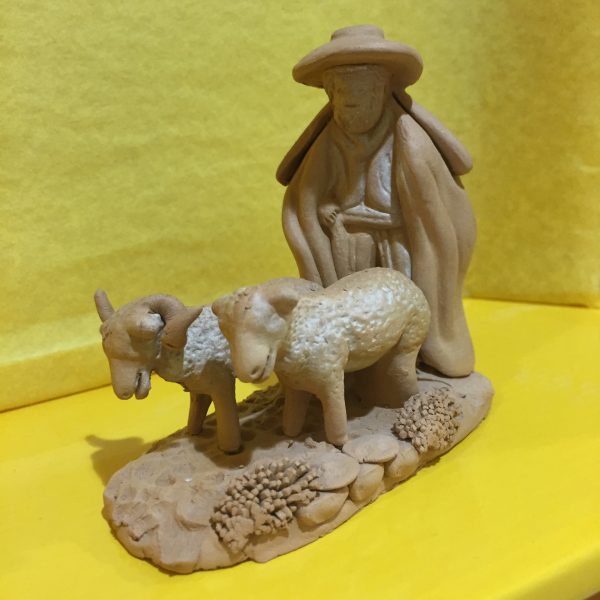 Scène composée de 1 santon 7 cm et 2 moutons, brut en terre cuite, fabriqué en Provence, France