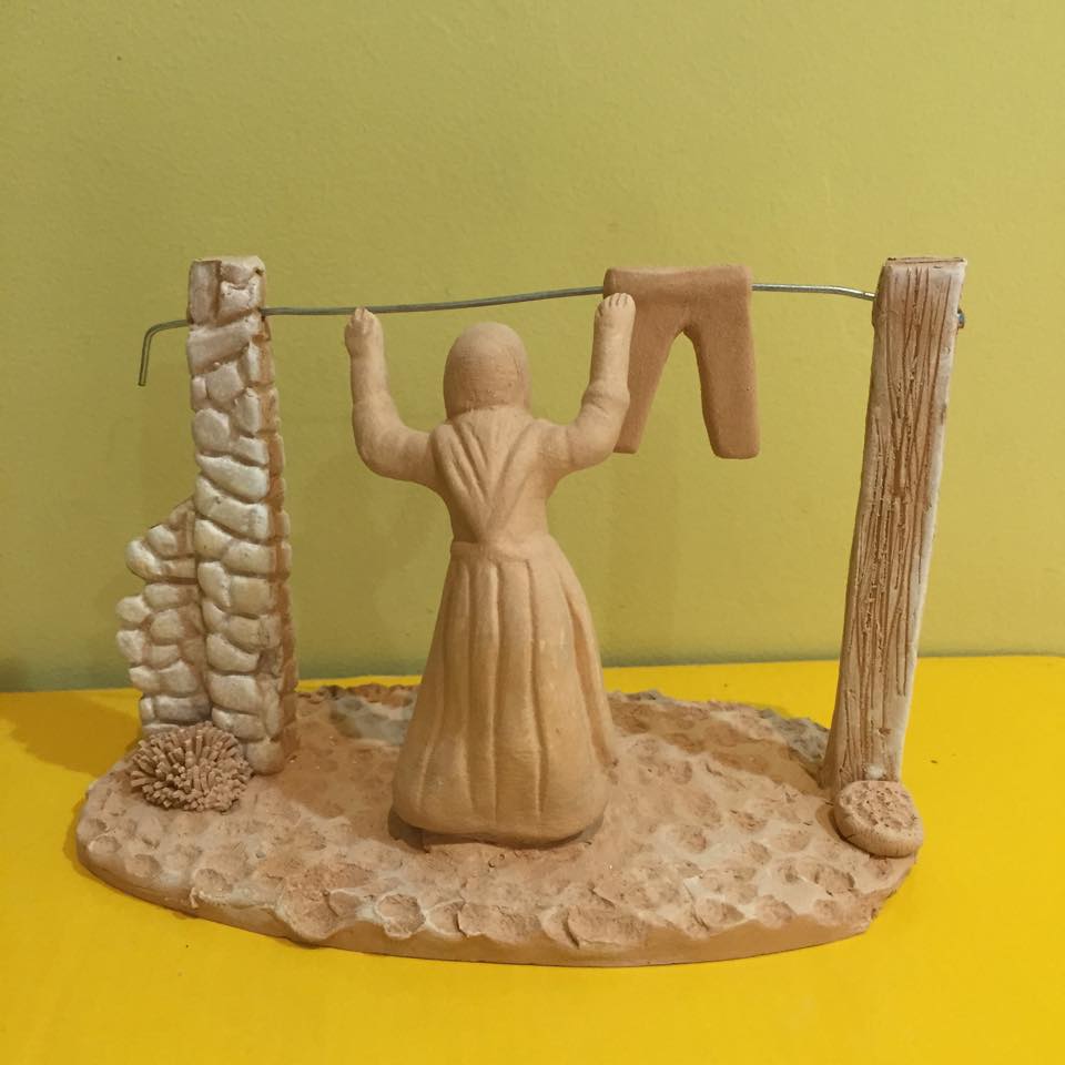 Scène composée de 1 santon 7 cm brut en terre cuite, fabriqué en Provence, France