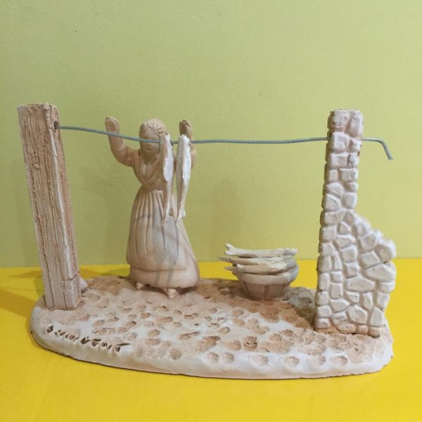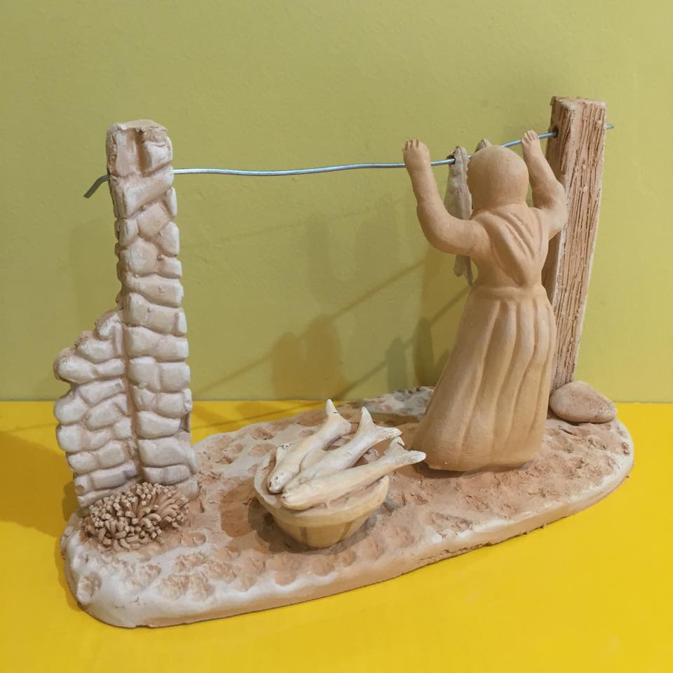 Scène de santon en terre cuite brute, fabriqué en Provence, France