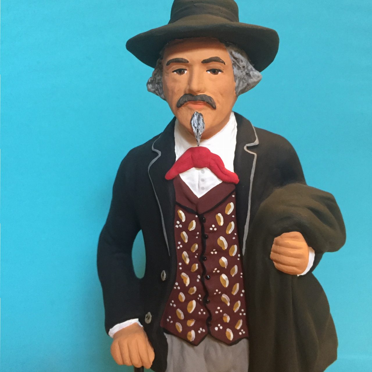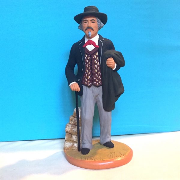 Figurine en terre cuite de 20 cm de hauteur représentant le poète et écrivain Frédéric Mistral, fabriquée et peinte artisanalement dans l’atelier des santons Fouque à Aix en Provence, France