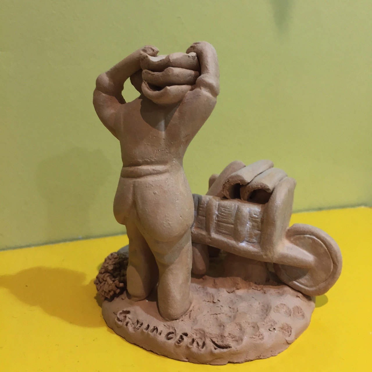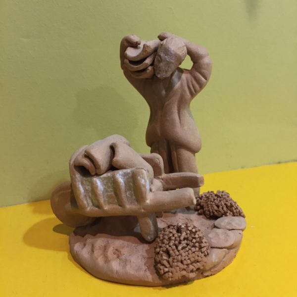 Scène en terre cuite composée de 1 santon 7cm et accessoires, fabriqué en Provence, France