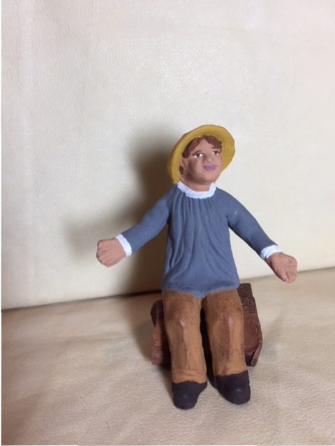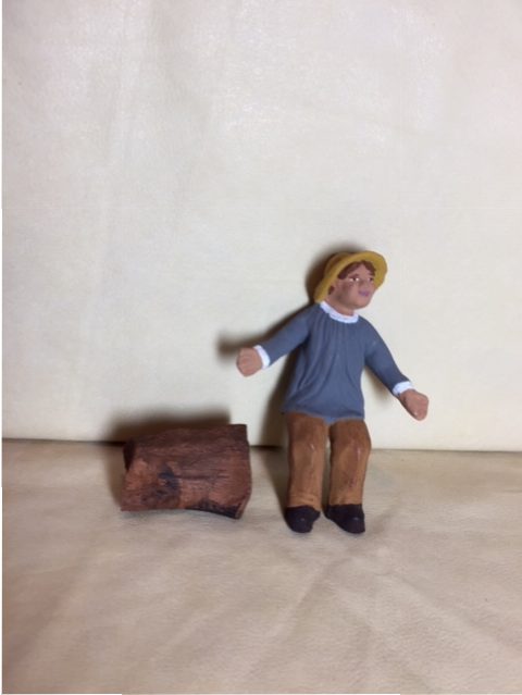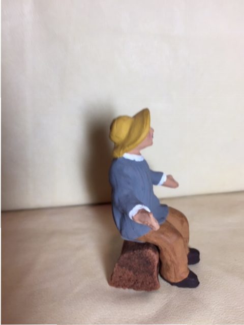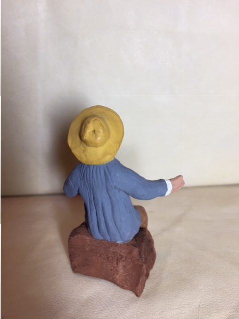 Figurine en terre cuite 7 cm (+accessoire), position assise, décoré à la main, fabriquée artisanalement en Provence