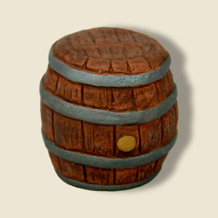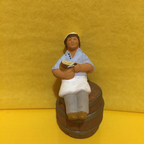 Santon en terre cuite 9 cm décoré à la main + 1 accessoire (tonneau) en terre cuite, fabriqué artisanalement en Provence, France