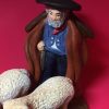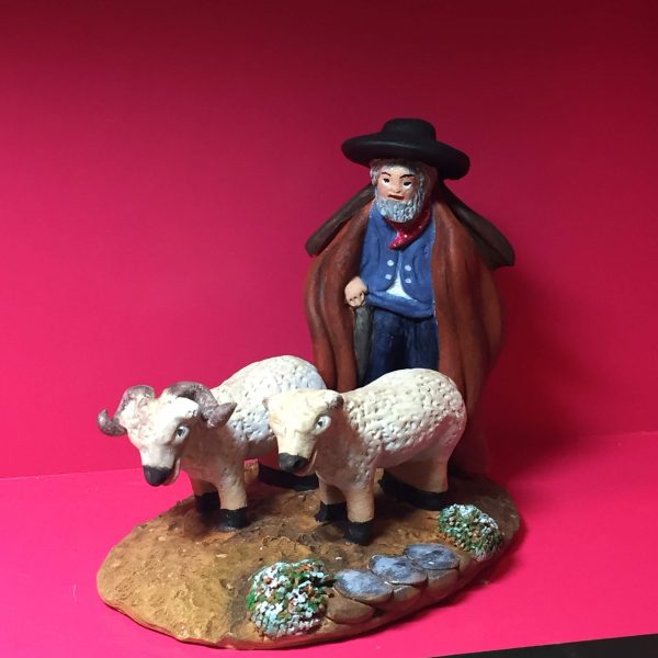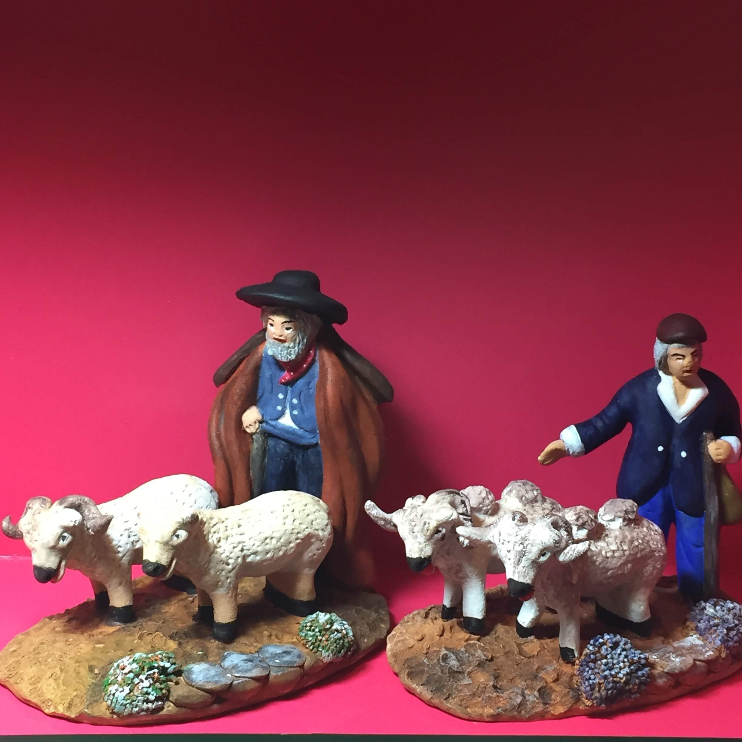 Scénette sur socle avec 3 santons en terre cuite décorée à la main, 7 cm, fabriquée en Provence, France