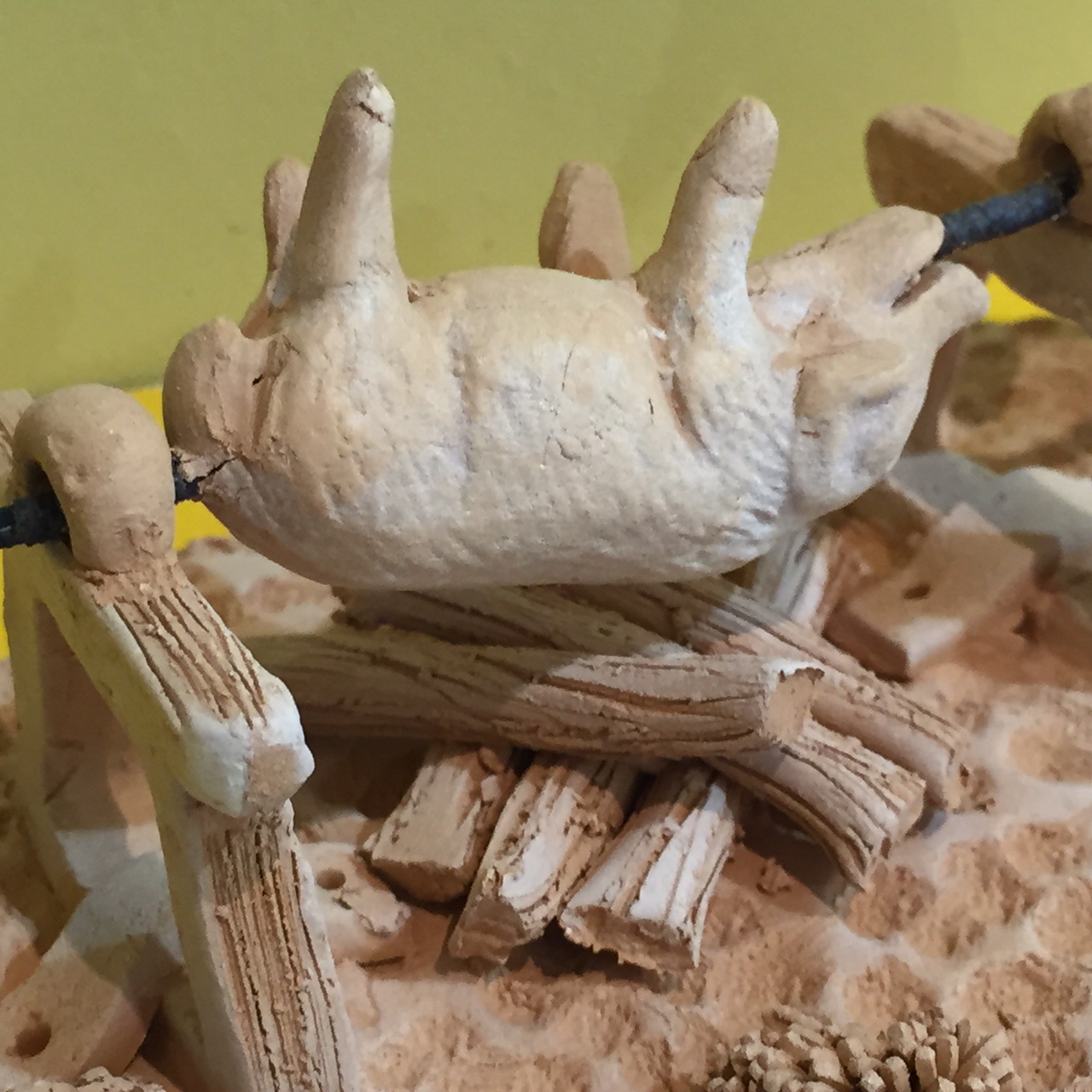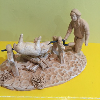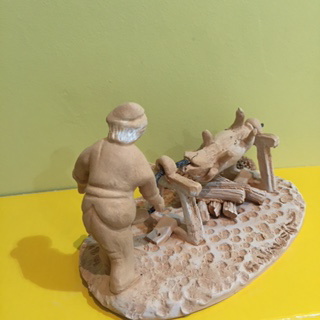 Scène formée de 2 santons 7 cm en terre cuite brute, fabriqué en Provence, France