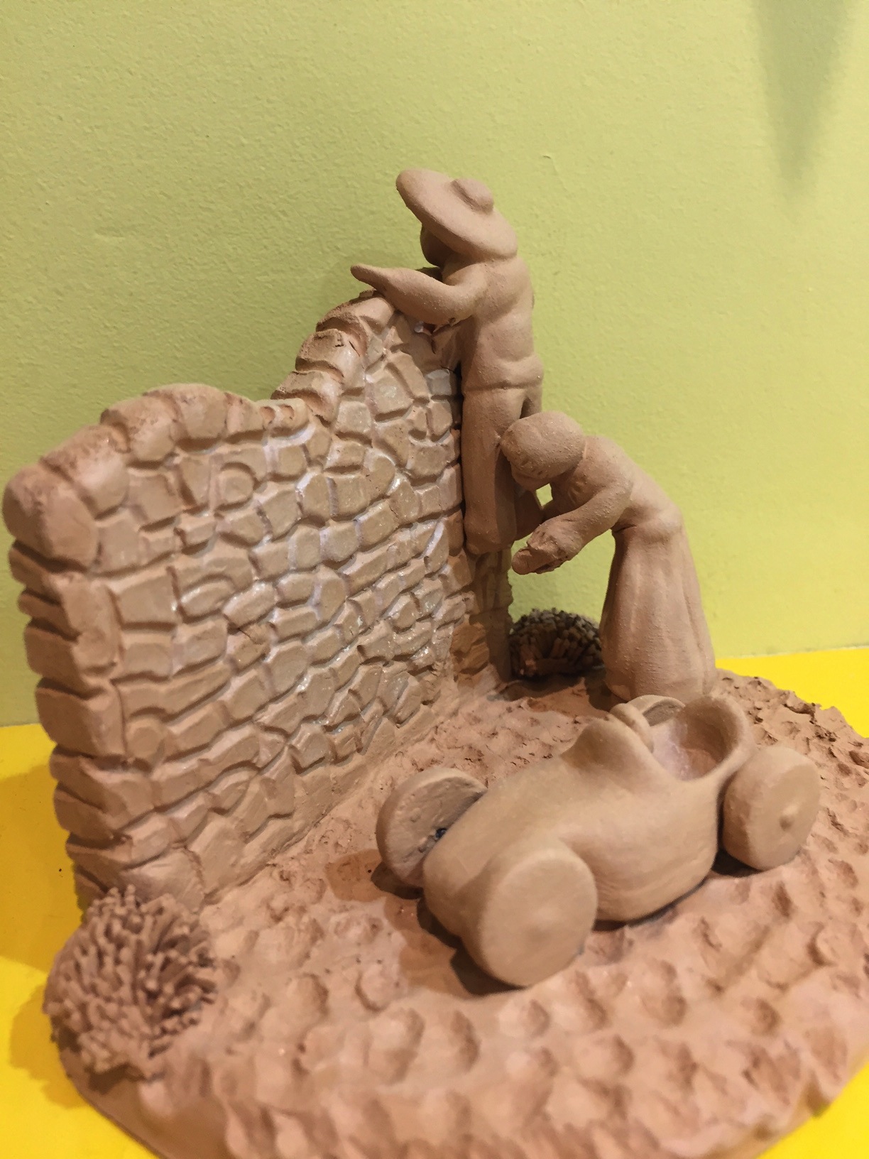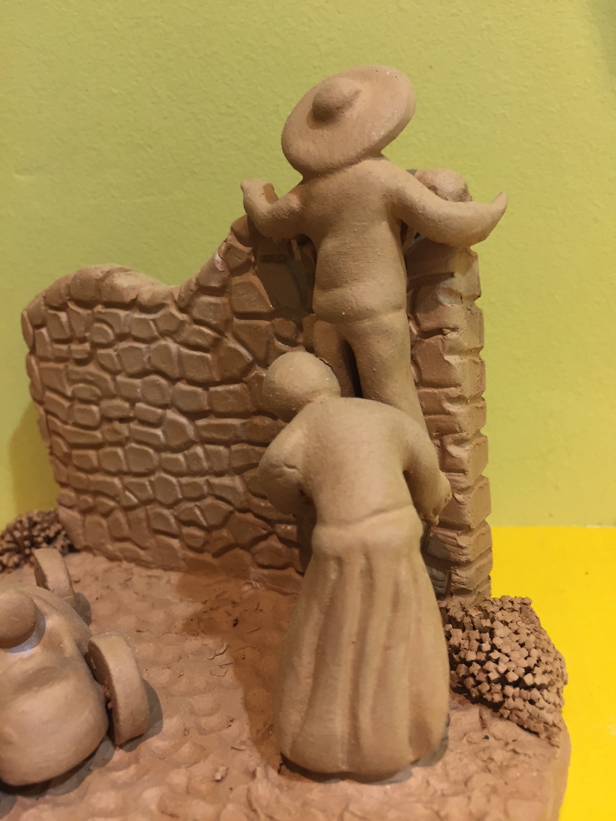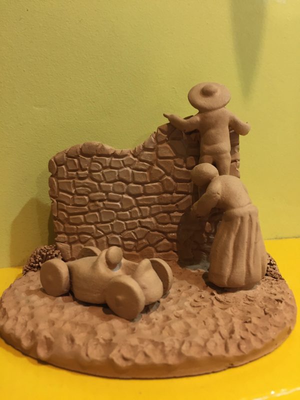 Scène en terre cuite composée de 2 santon 7cm et accessoires, fabriqué en Provence, France