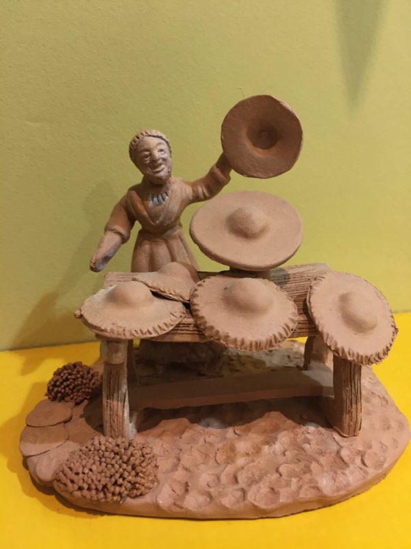 Scène en terre cuite composée de 1 santon 7cm et accessoires, fabriqué en Provence, France