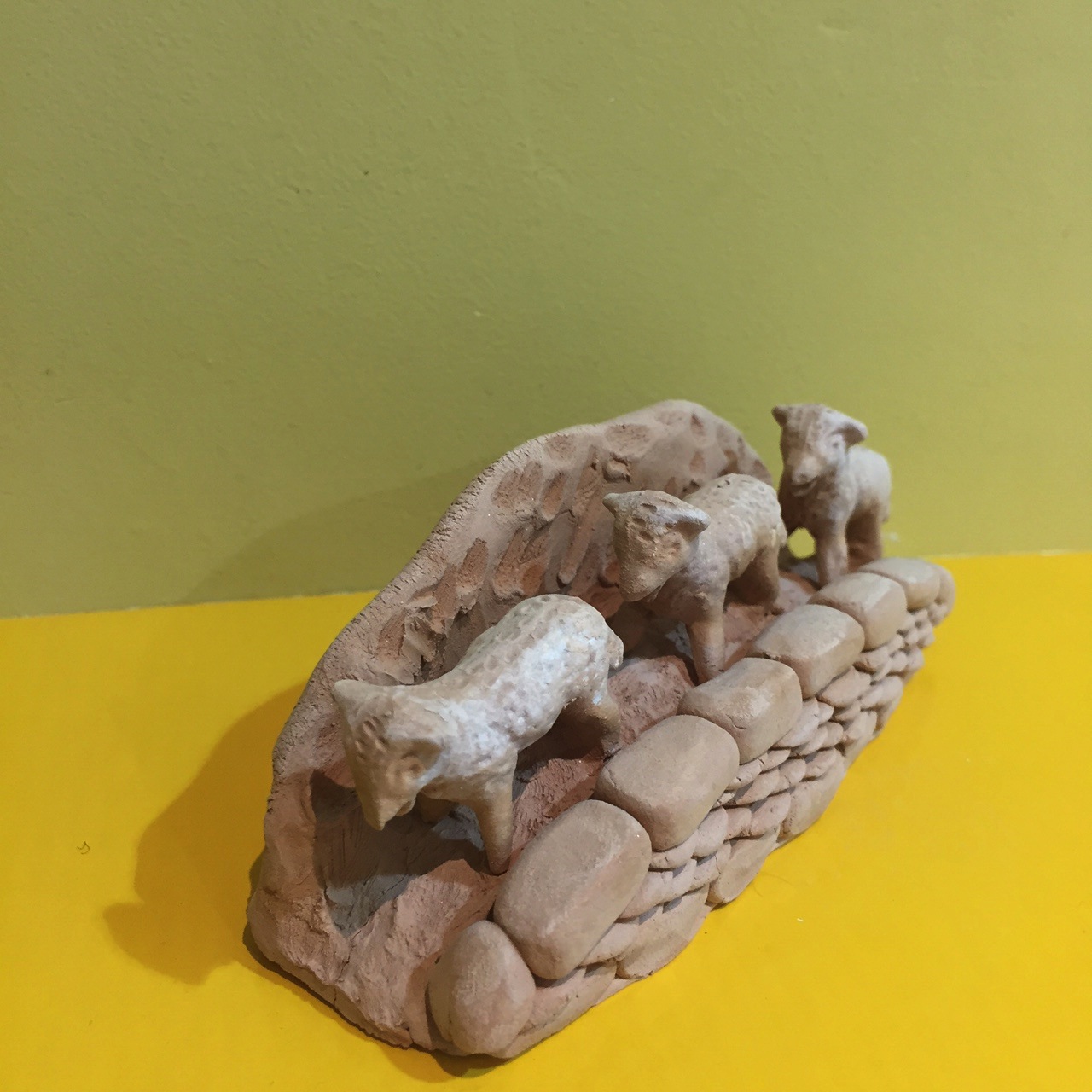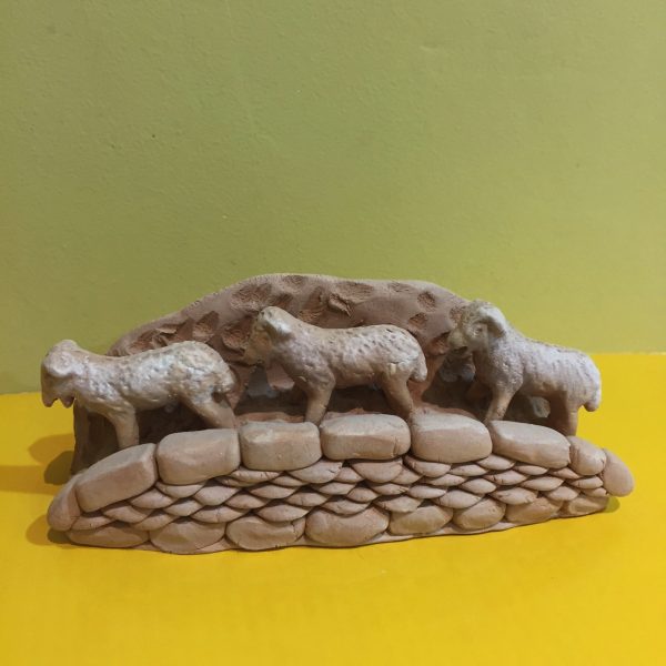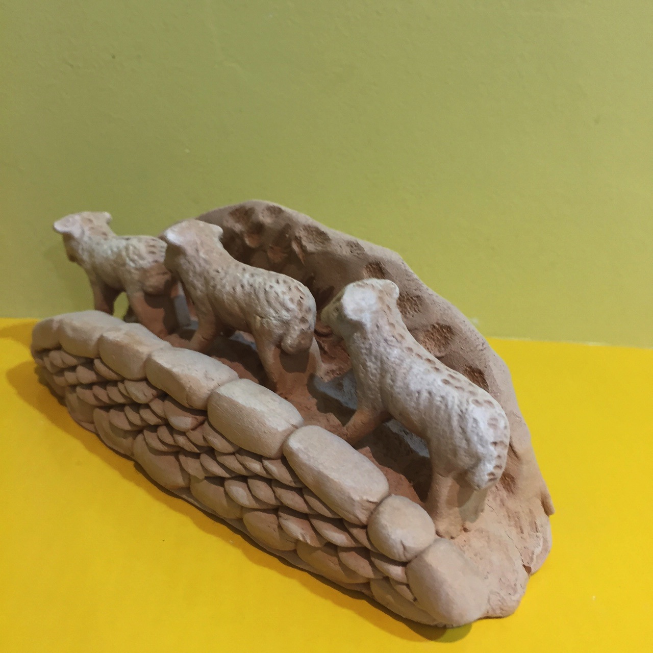 Ensemble composé de 3 animaux en terre cuite et un décor pont, idéal pour santons 7 cm, fabriqué en Provence, France