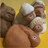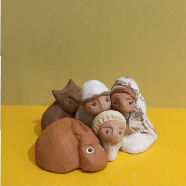 Scène composée de 5 santons cm en terre cuite, hauteur 5 cm, modelée et fabriquée en Provence, France