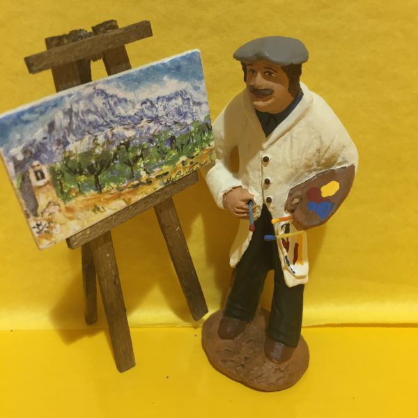 Santon 9 cm en terre cuite, peint à la main, et son chevalet en bois, fabriqué en Provence, France