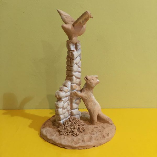 Scène composée de 2 animaux 7 cm, brut en terre cuite, fabriqué en Provence, France